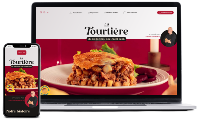 La tourtière du Saguenay-Lac-Saint-Jean a été commercialisée cet automne juste à temps pour le temps des Fêtes. Le site devait être simple et efficace afin de donner l’information essentielle aux utilisateurs, comme de trouver un point de vente, de connaitre la méthode de cuisson et de promouvoir la campagne en cours.
