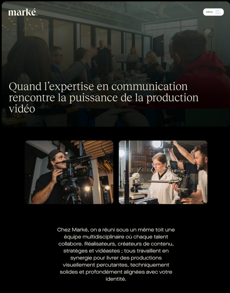 Le design web devait être à l’image de Marké : audacieux, inspirant et maîtrisé. Nous avons conçu une interface moderne, structurée et animée avec subtilité afin de soutenir le message sans nuire à la lisibilité.