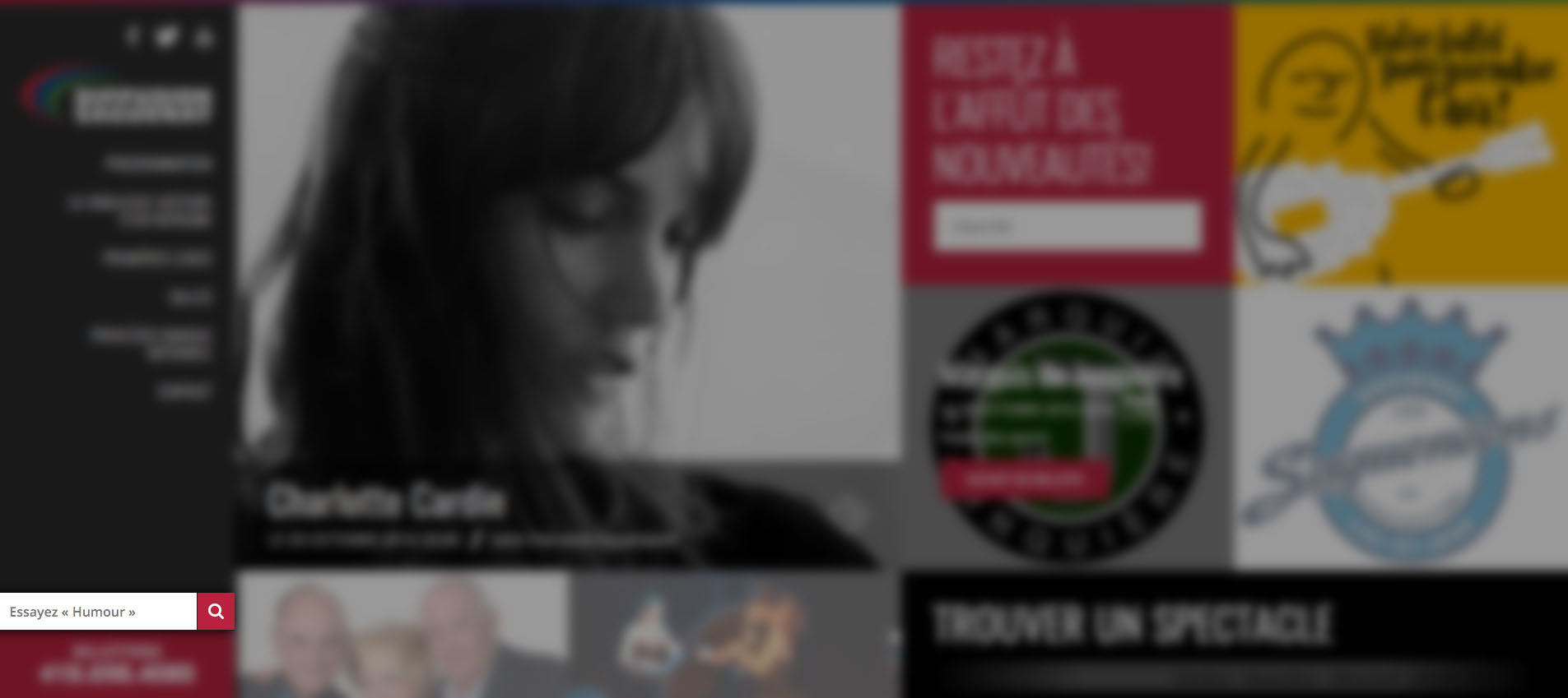 Il est depuis le début important pour le client que les visiteurs aient un outil pour l’aider à retrouver ce qu’il recherche rapidement : par exemple, « J’aimerais voir un spectacle d’humour la semaine prochaine ». Nous avions d’abord conçu un outil de recherche avancée par mois et catégorie. Bien qu’intéressant visuellement et fonctionnellement pour l’époque, pratiquement personne ne s’en servait, et pour cause : il n’était pas très intuitif, en plus de nécessiter de nombreux clics.